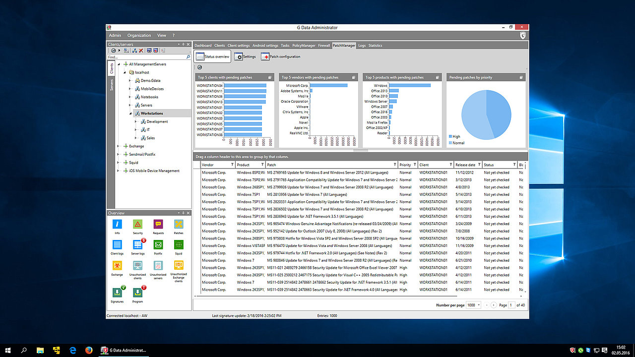 De Patch Manager kan probleemloos in uw bedrijfsoplossing van G DATA worden geïntegreerd, zonder nieuwe installatie. In optimale samenwerking met de bestaande functies vervolledigt een effectief Patch Management de beveiliging van uw bedrijfsnetwerk.