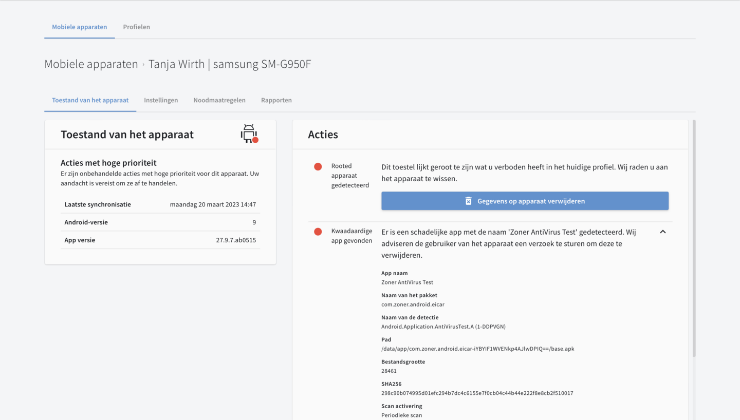 Houd de beveiliging van uw mobiele apparaten in de gaten in het centrale dashboard.
