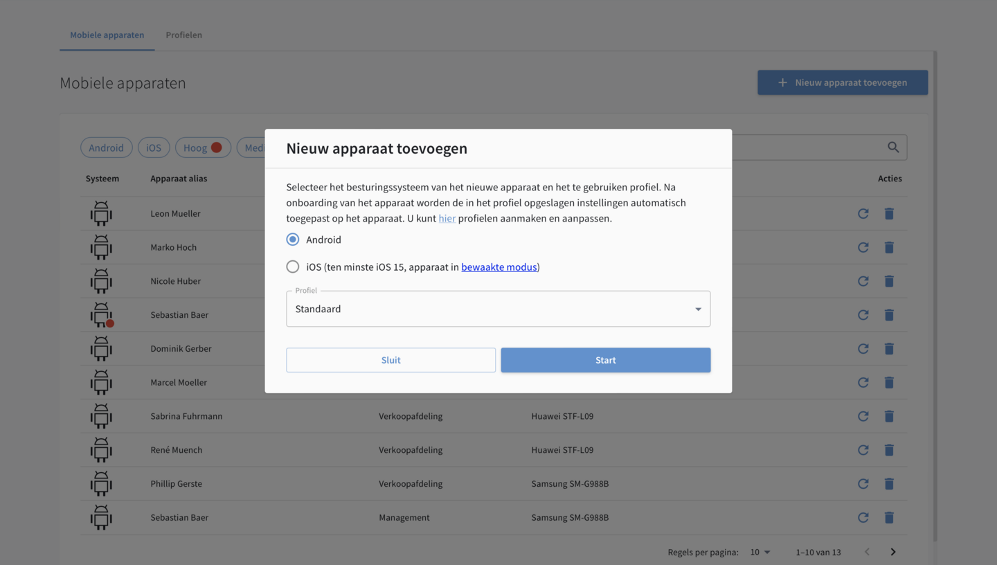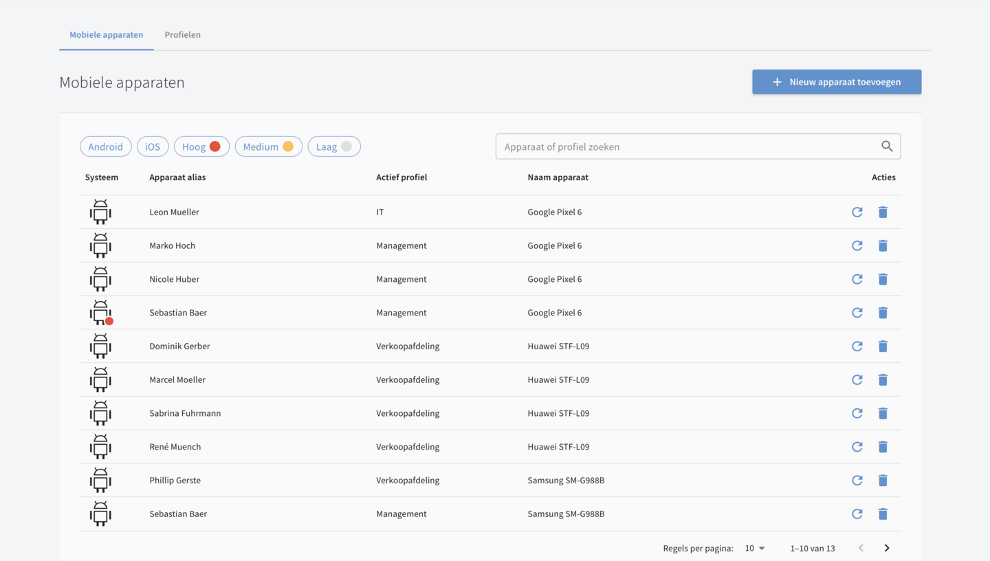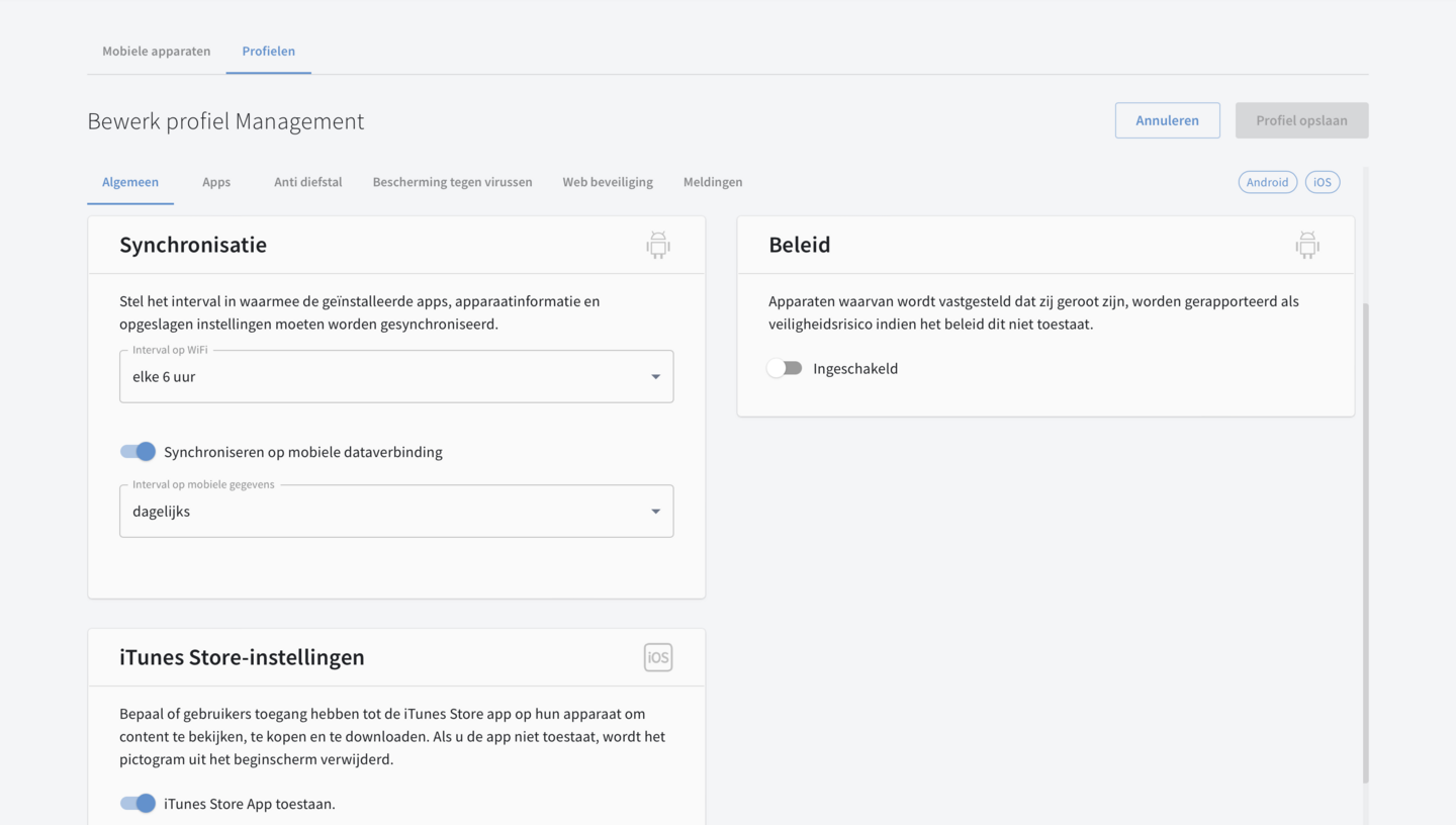 Wijs mobiele apparaten van afdelingen of sites toe aan individuele profielen op basis van het beveiligingsniveau.